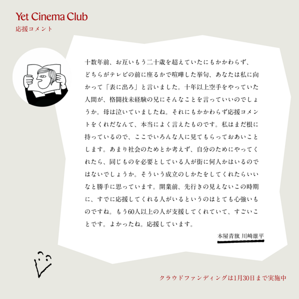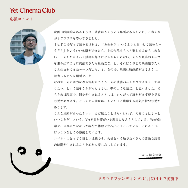 Yet Cinema Clubとfuzkueのクラウドファンディングは、こちら